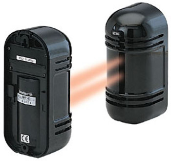 Cop Security 15-946 motion detector sensor security alarm system has automatic gain control, dual beam, pulsed infrared, sealed optics, built-in viewfinders, weatherproof housing, LED indicator.